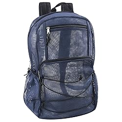MESH BACKPACK: For kids & adults is crafted of lightweight & breathable netted material that’s also durable. Strong stitching holds contents with ease, & fun color shows off your personality BACKPACK WITH WATER BOTTLE HOLDER: 2, actually! Quickly & easily grab a drink, a snack, or your umbrella STADIUM APPROVED: Ideal see through backpack for meeting schools safety requirements, getting through TSA/security checkpoints quickly, & for going to the game! MESH BACKPACK FOR SWIMMING GEAR: Hit the water, go to the beach (sand falls out, suits air dry), or go hiking, camping, use for travel (to work or school), store sports equipment for indoor or outdoor sports, & more FEATURES: 18” x 13” x 6.5” multi pocket backpack features 2 front zip accessories pockets, stretch bungee rope perfect for tucking items into, padded shoulder straps, 2 deep elastic side pockets, & roomy main compartment interior for convenient, organized storage