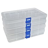 DUOFIRE Plastic Organizer Container Storage Box Adjustable Divider Removable Grid Compartment for Jewelry Beads Earring Container Tool Fishing Hook Small Accessories(15 grids,White x 4)