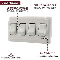 American Technology Components Quad SPST On-Off Switch with Bezel, 12-Volt, for RV, Trailer, Camper (White)