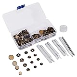 - Specifications: Button material: Brass Fixing Tool type: 633# 12mm; 655#10mm; 831#15mm; 201#17mm Color: Bronze Color, Black, Silver(Optional) Weight: 308-315g Package Includes: 40 x Set Buttons 4 x Set Tool 1 x Universal Base 1 x Hole Punch 1 x Store Case
