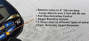 7" Concentric Elliptical Open Waterproof Searchcoil 9 Segment Category Icons for Target ID, Discrimination and Notching Graphic Target Depth Indicator Adjustable Length for All Ages & Heights Detects Coins to 8" Deep - Larger Objects Over 2 Feet