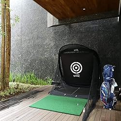 Practice full swing, chipping, and putting with all clubs with real golf balls Attach included red chipping baskets to practice your short game. Adjust to any desired angle: Top,middle,bottom Automatic Ball Return System (You only need one ball) and Ball Stopper (Stores over 200 balls) | Golf ball gently rolls straight down after impact without bouncing or touching the floors Patented Large target sheet that absorbs high ball impact, loud sound, and secures the net. Safely practice on a Large target area (60" x 60" ) Indoor & Outdoor. Portable & Lightweight. Fast & Easy Setup/Breakdown (Less than 30 seconds)