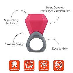 CELEBRATE BABY'S BIRTH MONTH - Silicone Ring teether is shaped like a large ring and vibrantly colored to match your child's birth month. Winner of the 2018 National Parenting Products Award. SOOTHE ACHING GUMS - Innobaby’s Teething Ring stimulates muscles of the lips, tongue, and cheek to help improve oral motor skills. The smooth silicone soothes sore gums while strengthening the oral muscles needed for chewing and eating. TWELVE VIBRANT COLORS - 12 colors to choose from: January Garnet, February Amethyst, March Aquamarine, April Diamond, May Emerald, June Alexandrite, July Ruby, August Peridot, September Sapphire, October Tourmaline, November Citrine, December Blue Topaz EASY TO GRIP - Large teething rings are easy for chubby hands to grab and hold comfortably. SAFE FOR BABY - Silicone teether is BPA, phthalate, PVC, latex, and lead-free. Top rack dishwasher safe and freezer safe.