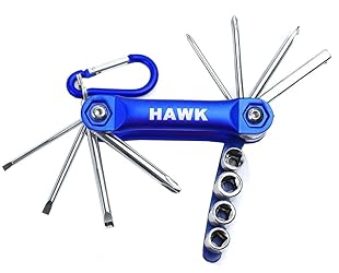 PREMIUM MATERIAL: Made from Chrome Vanadium Steel ensuring durability and robustness. SLEEK DESIGN: Features a corrosion-resistant anodized aluminum frame with a modern aesthetic. MULTIFUNCTIONAL: 4 Sockets (sizes: 6,8,9,10mm), Phillips head sizes (PH0, PH1, PH2, PH3), and Slotted head sizes (3,4,5mm) all swivel from a singular handle. PORTABILITY ENHANCED: Comes with a snap hook keyring for easy attachment to keychains or belt loops. ALL-IN-ONE: Everything you need in one compact tool set, ensuring you're always prepared.