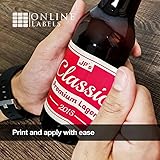 - Description:Printable 3-3/4" x 3" beer bottle labels are great gifts, party favors, and decorations. Use blank beer bottle labels to celebrate an engagement, wedding, graduation, birthday, and more. The rectangular shape is great for a variety of beer bottle shapes and sizes. This material is not water resistant.Make your own beer bottle labels with dates, photos, names, and other exciting information. You can design your custom stickers using Maestro Label Designer, an exclusive design program for Online Labels customers. It's included in every order with your unique code listed on your order's packing list. When you're ready to print, our white beer bottle labels work in both laser and inkjet printers like HP, Canon, Brother, Epson, Dell, and more.Every order of our blank labels comes packaged in a hard plastic storage clamshell to keep your sheets protected during shipping and between uses.Material features: Permanent adhesive Matte facesheet is writable with pens, markers, and crayonsMaterial is not waterproof or intended for outdoor useMade in the USA