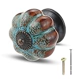 Mgoodoo 1.57'' Pumpkin Knobs, Ceramic Cabinet Knobs for Dresser Drawer Antique Drawer Pulls Decorative Knobs for Closet Cupboard Door Kitchen Furniture Hardware Handles Pulls Blue