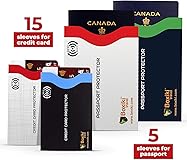 Advanced RFID secure sleeves are designed to protect credit cards, money cards, and identification cards from electronic fraud or theft RFID shields are a superb debit card protector, or for passport holders RFID blocking to provide superior travel security Made from special RFID-blocking material, this credit card holder and RFID-blocking passport holder is thin and lightweight certified secure sleeves for credit cards protect against scanning of digital and electronic chips by thieves, tear- and water-resistant RFID sleeve with electronic armor is the identity theft protection for your bank cards this credit card and ID holder prevents electronic access to your cards; valuable credit card protection, an ID card protector, and a passport protector RFID to block scanning and skimming Credit card protection sleeves are designed with a color coding system to find each card easily and quickly RFID credit card holders and passport holders RFID have different colors for superior convenience the special high-quality rigid aluminum foil coating of these tiny slim RFID blocking wallets ensures you will never be a victim of high-tech crime Includes 15 RFID credit card protector sleeves and 5 RFID sleeves as passport protectors to protect your driver's license, subway or green card, hotel keys, and all family travel documents you don’t need to carry an RFID-blocking wallet with you, just several these lightweight credit card sleeves protective sleeves and RFID passport protectors