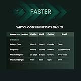 - Connect with Confidence LINKUP Cat7 26 AWG & 30AWG Patch Cables provide true Cat7 speeds, perfect for premium audio, HDBaseT graphics cards and extreme LAN networks applications. Featuring full spec Cat 7 bandwidth, quality construction and versatile compatibility. Tested with Versiv CableAnalyzers. Backed by a LINKUP Limited 1-Year Warranty. These Ethernet cables provide full Category 7 speeds using 600 MHz bandwidth and are suitable for 10BASE-T, 100BASE-TX (Fast Ethernet), 1000BASE-T/1000BASE-TX (Gigabit Ethernet) and 10GBASE-T (10-Gigabit Ethernet). LINKUP Cat7 patch cables deliver ultra-fast and accurate connections for all your LAN (network) needs. All LINKUP Cat7 26 & 30AWG wire pairs are twisted, individually shielded with additional heavy-duty mesh shielding for maximum EMI/RFI and alien crosstalk (AXT)interference protection. Gold-plated connectors offer reliable, fast connections. RJ45 connectors are suitable for a wide range of applications and are compatible with PC/Mac (some may require an adapter), NAS, VoIP, POE, POE+ (Power Over Ethernet Plus), Routers, Cable Modems, Printers/Scanners, and much more. Tested with Versiv CableAnalyzers. Reports packed with every order. Tested for copper certification, fibre optic loss, OTDR, Alien Crosstalk, and fiber end-face testing and inspection, all with a Level V 1GHz accuracy.Special Features:✓ Tested with Versiv CableAnalyzers. Reports packed with every order. ✓Suitable for EXTREME AUDIO, Extreme LAN applications & HDBaseT graphics applications. ✓Backward compatible from 10GBASE-T (10-Gigabit Ethernet). ✓600 MHz: True Cat 7 Performance. ✓Backed by a LINKUP Limited 1-Year Warranty.