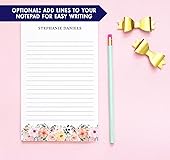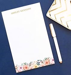 - Simple and modern floral style notepad to have for jotting down notes, writing grocery lists or messages. Makes a great gift for birthdays, holidays and graduation. ≡≡≡≡ ITEM DETAILS ≡≡≡≡ - 1 (one) 50-sheet printed notepad - change quantity to increase amount of notepads - Half letter size sheets - 5.5 x 8.5 inches - Digitally flat printed on 70lb., smooth, white, text weight paper - Glued at top with board in the back - Packaged in clear sleeve - Option to gift wrap during checkout ≡≡≡≡ HOW TO PERSONALIZE ≡≡≡≡ 1) Click on OPTIONS above the add to cart button 2) Choose Ink 3) Fill out requested personalization details 4) After you are done, click ADD TO CART and complete purchase ≡≡≡≡ ADD ONS ≡≡≡≡ - Add Envelopes (optional): 1) Select quantity of envelopes, 2) then select envelope color. Please Note: If you ONLY choose an envelope color and DO NOT select an envelope quantity, NO envelopes will be sent. ≡≡≡≡ COORDINATING ITEMS ≡≡≡≡ Personalized Note Cards: https://www.amazon.com/dp/B07BWTPWXG Luggage Tag: https://www.amazon.com/dp/B07FB3GHDY