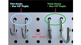 - A new and innovative way to secure pegs and hooks to a pegboard. These peg locks are easy to use and hold the peg or hook in place. Pegitz peg locks hold the peg or hook in the hole so it is less likely to fall out when an item is removed. It is removable, reusable and helps to preserve your favorite holes. Pegitz Peg Locks come in multiple colors to allow color coding of your work space. They also come in 2 sizes to fit regular and thin hooks. Pegboard hole size must be at least 1/4" in diameter (standard size). If you are not sure of hole size, you can try inserting a 1/4" drill bit by hand into the hole to verify. If hole is too small, you can fix by using 1/4" drill bit to widen. Installation Tips: 1. If the Pegitz part is hard to insert into the pegboard, it is typically because the holes are smaller than 1/4 inch. You can fix this by using a 1/4 inch drill bit to widen the hole. 2. If the hook is hard to put into the Pegitz part once installed in the pegboard, you can "Pre-Stretch" the Pegitz part by pushing it onto the hook BEFORE inserting into the pegboard. Then, remove hook and install into pegboard as normal. If the pegboard holes are too small (see #1 above), it can make the hook harder to insert.