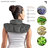 Sharper Image Heated Neck & Shoulder Wrap - Microwavable Warm & Cooling Plush Pad, Scented Aromatherapy (100% Natural Lavender & Herb Spa Blend), Pain Tension Headache Relief Therapy, Gift for Women
