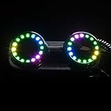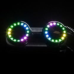 Programmable led pixel goggles with infinite customization options dark tinted lenses for protection a full color spectrum and on board memory to save your favorite patterns 350 epic modes to blow your mind features multiple solid color modes strobing modes and a whole range of animated modes to choose from Super bright with 14 selectable brightness levels stand out in the crowd at your next rave edm show party concert music festival light show or event of any kind Wireless remote control included; easy to use pocket sized remote to save and access all your favorite colors with modes at the push of a button Built in battery pack sleeve with adjustable elastic band provides comfort and functionality