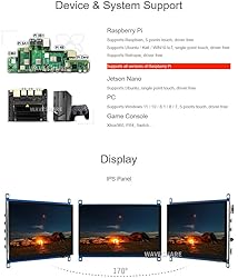 Provide online user manual, please check the manual carefully before using! 7inch IPS screen, 1024x600 hardware resolution, configurable by software (up to 1920x1080). When used with Raspberry Pi, supports Raspberry Pi OS / Ubuntu / Kali and Retropie. Use with Windows PC, support Windows 11 / 10 / 8.1 / 8 / 7, 5-points touch. Multi-languages OSD menu, for power management, brightness/contrast adjustment, etc. It has a 3.5mm audio jack and supports HDMI audio output. Supports VGA input (specific cable is required and should be purchase separately). High-quality PC case, optional tilt angle: 30°/50°(case version only).