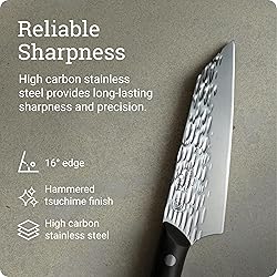SPECIALIZED BONING & FILLET KNIFE: The Kai PRO 5-inch Asian Multi-Prep Knife is expertly designed with a triangular blade perfect for maneuvering around bones and between joints, making it a must-have for any kitchen. PRO LEVEL PERFORMANCE: Designed with both safety and quality in mind, the Kai PRO Series provides a lifetime of exceptional performance even with rigorous use. Hammered tsuchime finish helps release food. RELIABLE SHARPNESS: Crafted with Japanese AUS6M stainless steel for long-lasting sharpness, this knife delivers razor-sharp precision with a hand-sharpened 32-degree edge. SUPERIOR CONTROL: The contoured POM handle is securely riveted to the full-tang blade, offering a sturdy and comfortable grip that instills confidence with every slice. QUALITY, ACCESSIBLE BLADES: With over 100 years of blade making experience, Kai PRO provides beautiful, accessible, quality cutlery, accessories and more to customers worldwide. Supported by free sharpening and honing.