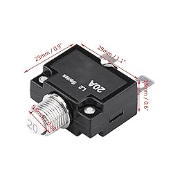- Features: --EXTRA : When the load exceeds the rated current, this switch reset button will automatically cut off the circuit, and thus play a role in protecting the line. --RESET SWITCH DESIGN: This press to reset breaker can be reset after a disconnect over a period of time, then you can press the reset switch to use it again. --CIRCUIT : Compact design enables high density circuit configuration. Made of plastic, high quality and long service life. --WIDE APPLICATION: thermal overload protector is widely used in automotive, industry and industry. Specifications: Rated Voltage: DC 50V, AC 125-250V, 50/60Hz Current: 10A / 15A / 20A (optional) Material: Plastic, Metal Color: Black Size: Show as Picture Package Weight: approx.16g Package List: 1 * Overload Protector