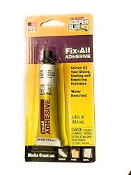 - This tube of Fix-All Adhesive is 5/8 ounce. It solves gluing, sealing, and repairing problems.