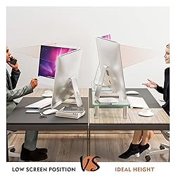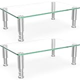 Good Health: Monitor or notebook computer is elevated to a proper ergonomic viewing position, creating best posture which helps reduce neck and back strain,Then stow laptop underneath monitor riser for space-saving storage Tilt Function: My computer monitor riser can adjust forward 0-15 degree to put the computer comfortable position Height Adjustable: The stainless steel leg can be freely adjustable height from 3.4 inch to 4.9 inch Easy Assembly and widely usage: Combine the tempered glass and stainless steel legs through the screw, 2 Pack ,Can be used in Monitor Riser ,Printer Stand ,Computer Stand ,Laptop Riser,Desk Shelf & Xbox one Safety Use: 1/4" inch Tempered safety glass can bear Maximum weight capacity 88Lbs