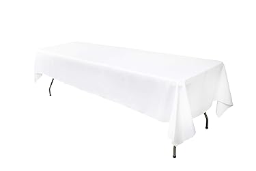 Polyester Material:our tablecloth made of polyester fabric,stain and wrinkle resistant feature of table cloths adds a classy touch to any plain tables and table covers by swathing with this seamless beauty. You can transform any dining experience into a magnificent feast Various size and bright color:rectangle tablecloth(60x126 inch),White tablecloth, white tablecloths for rectangle tables,solid tablecloths,or choose your ideal size and color. Match your wedding or party theme. Make sure to check all new beautiful colors sizes and shapes Special design:One-piece design with elegant lock edges,stain & wrinkle resistant,vertical strong sense,resilient fabric won't fade, rip and shrink,washes easier,Make your life more like life Functional tablecloths fit for:oblong tablecloth,any kinds of banquet,tablecloths for wedding parties,restaurant,like food buffet table, birthday party,Coffee Shop, Picnic,Thanksgiving & Christmas dinner,graduation party,housewarming and more occasion,take more happy hours with your family and friends, white tablecloth Easy to care: Machine wash, cold, gentle cycle. Tumble dry low. Lightly iron if necessary.