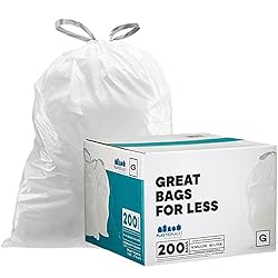 TEAR RESISTANT - Thickness of 1.2 mil makes a great alternative and replacement trash bags PERFECT FIT - Our liners are designed to fit perfectly the code G, with no messy overhangs SIZE- 17.5”W x 28”h. Comes in an easy to open package, on 4 Rolls (200 Count) REINFORCED DRAWSTRING BAGS - Produced with a triple layer blend of low-density Resins