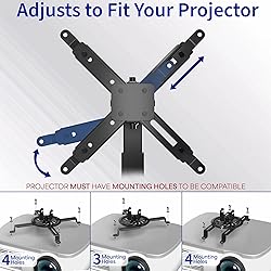 • Enjoy a variety of crisp viewing angles with universal ceiling and wall projector mount (MOUNT-VP06B) from VIVO! Weight tested at 44 pounds, this fully adjustable mount is perfect for home theaters, classrooms, conference rooms, waiting rooms, fitness centers, and more! Featuring solid steel construction for ultimate strength and durability, a sleek black design complementing nearly any environment, easy height adjustment/extension for a customized setup, and integrated cable management to keep everything organized, this mount will get the job done! A simple tightening of the joints makes everything as fluid or stationary as desired, and all hardware and instructions are provided for easy assembly. Compatibility Designed to fit the majority of projector brands on the market with mounting holes ranging from 8.9” to 12.4” apart. Before purchasing, be sure to measure the distance between your projector’s mounting holes (especially the diagonals). If all diagonals measure 12.4” or less, this mount will fit your projector. Features Mounting Hole Range: 8.9” to 12.4” Height Adjustable / Extension Range: 16.9” to 25.6” Tilt: -15° to +15° Swivel: 16° Weight Capacity: 44 lbs