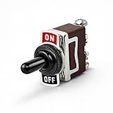 Reliable 12V Toggle Switch — 2-pin SPST design with solid screw terminals for secure wiring and consistent electrical contact. Latching Function — Features ON-OFF positions with maintained ON action. Easy Panel Mount — Installs easily with included hex nut. Fits standard 1/2" (12mm) mounting holes on panels or dashboards. Heavy-Duty Performance — Rated 20A @ 12VDC, 20A @ 125VAC, and 15A @ 250VAC for automotive, marine, or workshop applications. Waterproof Package — Includes 5 × SPST metal toggle switches with insulated boots for marine and wet environments