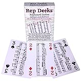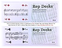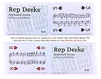 - Rep Decks are musical repertoire playing cards that allows you to play over a dozen fun and exciting games that test, challenge and improve your knowledge of piano, organ and harpsichord music. A melodic excerpt from the standard and most popular keyboard pieces of music appears in the center of each card. These excerpts are not duplicated in the Introductory Edition or Intermediate Edition. This 54-card deck includes all 13 ranks in their customary suits plus red and black joker cards. The traditional one-eyed face cards have an "eyeball" image on them to remind players which ones they are. Play everyday card games and then download the free Keyboard Series Games Manual and Answer Key to begin using your wits and knowledge of piano, organ and harpsichord repertoire to play clever Rep Decks games like Rep Recall, Team Rep Recall Relay, Rep Recall Challenge, Team Rep Rendition Runaway, Rep One Eye on the Conductor, Rep Recital Roulette and many more! Or make up your own musical games to play by yourself or with others. The Games Manual and Answer Key are not included with the deck of cards but are free to view, download and print at anytime. The tuck box that the cards are packaged in will be tight when it is new and first unwrapped but after a few uses the box will loosen up and be easy to open.