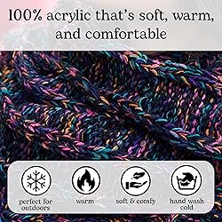 FASHIONISTA ESSENTIALS: Unleash your inner fashionista with this beanie and scarf for women, a vibrant four-tone mix of black, purple, orange, and teal. This beanie scarf for women from Funky Junque not only adds a pop of color to your winter wardrobe but also keeps you warm and cozy. WINTER COMFORT: Experience the softness and warmth of winter infinity with this 100% acrylic, oversized chunky knit beanie and scarf set. This infinity scarf for women promises durability and longevity, with high-quality material that remains soft and comfortable, even after multiple washes. ADJUSTABLE FIT: Offering a great fit, this beanie for women measures 9” long by 10” wide lying flat, providing plenty of stretch and slouch. This slouchy beanie for women adapts to your style and comfort needs, with the scarf measuring approximately 61” x 12” lying flat, offering multiple styling options. SEASONAL VERSATILITY: Perfect for all seasons, this scarf for women ensures you stay warm and stylish, whether you're walking downtown or hiking in the mountains. This womens winter hat is ideal for fall, winter, holiday seasons, and even cool spring days, keeping you covered during outdoor activities or simple errands. STYLISH DUO: Featuring a matching beanie and scarf, this winter hat allows you to look fun and fashionable while staying warm. Whether you want to add a pop of color or stick with the basics, these winter hats ensure you look adorable, offering the perfect blend of style and comfort.