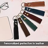 ✅Handmade in the USA: Expertly crafted by American artisans, this personalized leather keychain is made from full grain leather and stamped to order. A premium key ring fob that delivers quality, durability, and timeless everyday style. ✅Premium Full Grain Leather: Available in black, slate, chocolate, red maple, gray, and navy, this custom leather key fob is built to last. Genuine leather develops a rich patina with age, making each personalized key chain unique to its owner. ✅Custom Monogram Detail: Personalize your leather keychain with one bold initial. Choose debossed stamping for a classic look or upgrade with metallic gold or silver foil for a monogrammed key ring that truly stands out and reflects your style. ✅Minimalist Everyday Carry: Slim yet functional, this engraved leather keychain for men or women keeps car keys, house keys, or office fobs organized. Designed for pockets, purses, or bags, it doubles as a stylish keychain and versatile accessory. ✅Versatile Style: Sleek, practical, and modern, this leather key chain also functions as a bag charm or alternative. A timeless everyday carry that blends seamlessly into casual or professional settings, pairing functionality with understated elegance. ✅Thoughtful Gift Idea: This personalized leather key fob makes a meaningful gift for men and women. Perfect for birthdays, weddings, anniversaries, Father’s Day, Mother’s Day, holidays, or corporate gifting. A custom keepsake that is stylish and lasting.