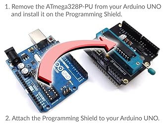 - CANADUINO ZIF socket Arduino Programming Shield V2 means no more fiddling around with bent leads and DIP sockets!You are using your Arduino UNO board to program blank chips for use on breadboards or in other circuits? Always trying to remove the chip without bending the leads? Here comes the solution for your programming needs. This little board just hooks up like any other shield to your Arduino Uno R3 (or compatible) and gives you the liberty of inserting and removing your Atmega328P chips without wear, bending legs or breaking the socket. This shield does not do anything else than moving your Atmega328P from the UNO board to the ZIF socket. Extremely convenient for programming multiple chips in a short time, or to flash a program and then to move the chip to a breadboard.CANADUINO ZIF Socket Programming Shield V2 for Arduino comes with an ICSP header and long, stackable leads. It can be used as an ICSP programmer in combination with an USBtinyISP as well - no Arduino board required.The ZIF socket adapter also has cutouts to make the Arduino UNO onboard LEDs visible.- 4 stackable long lead shield headers (without signal print) - ZIF programming socket for Atmega328 / Atmega328P - 16MHz crystal for the controller - ICSP header - necessary other parts