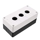 uxcell Push Button Switch Control Station Box 22mm 3 Button Hole Waterproof, White and Black
