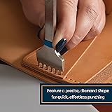 - Weaver Leather Supply Diamond Leather Chisel Set: Enhance your leathercraft projects with the precision and ease of our diamond leather stitching punch set, specially designed to take the hassle out of punching holes for hand stitching. Whether you are creating custom belts, repairing saddles, or crafting leather bags, this diamond stitch leather set gives you clean, accurate holes with every use. Designed with 5 mm spacing and equipped with 1-prong, 2-prong, 4-prong, and 6-prong tools, this leather stitching kit helps prepare your leather for detailed stitching projects. The diamond point tips of this hole puncher for leather ensures fast and accurate punching, cutting effortlessly into the surface to create holes at just the right angle for saddle stitching. Crafted from durable carbon steel, each leather hole puncher tool easily pierces thick leather, offering dependable performance over time. Convenient color coding on these leather sewing tools lets you quickly identify any easy stitching tool according to the size, while a light application of beeswax keeps punching smooth and snag-free. Perfect for any DIY leathercrafter who frequently encounters hand sewing and saddle stitching tasks in their work, this pricking iron set is a must-have addition to any leathercrafter’s toolkit.