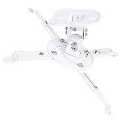 - This DYNAVISTA universal ceiling mount features 4 adjustable swing arms and each arm has two sections designed to adapt to a variety of mounting patterns. It mounts the projector within 5" (128mm) away from the ceiling and includes support for 360 degrees of rotation, as well as 15 degrees of 4 directions tilt and roll adjustment. It is constructed of steel and can support up to 33 lbs. (15 kg). Hardware for mounting to on wooden or concrete ceiling is included.Features and SpecificationCompatible with projectors with distance between the mounting holes on back 14inches or lessMaximum load capacity: 33 (15kg)Made of premium high quality and heavy duty steelFull motion and adjustable projector mount with 360°rotation, hitting all viewing angles.Low-Profile design with 5 inch away from the ceilingAdjustable tilting Bracket 15° left and right , 15° front and rearEasy to install: features quick release hooks that detach and attach by loosening and tightening mounting boltsCompatible with BenQ, Epson, Acer,Optoma, Sony, Video, Dell and other popular brands.Product weight: 3.15 (1.4kg)Color:WhiteNote: The mounting arms for this projector mount have a maximum reach of 14”. Before purchasing, be sure to find the mounting holes on top of your projector and measure the distance between each one (especially the ones diagonal from one another). If all diagonals measure 14 inches or less then this mount will fit your projector. We are online for you 24/7, do not hesitate to contact us regarding any issue related to this product.