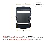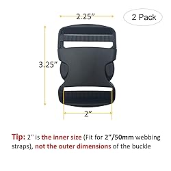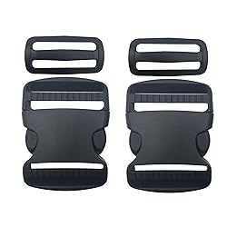 - These heavy duty buckles are made of high quality polyoxymethylene (POM), feature good flexibility and strong pulling, thicker and durable than standard buckles. Easy one-handed release design, adjustable webbing length on both sides. Great for Backpacks, bracelets, Purses, lanyards, dog collars, Belts, etc. Package: 2 Pcs 2” plastic buckles, fit for 2"(50mm) webbing straps 2 Pcs 2” tri-glide slides, fit for 2"(50mm) webbing straps