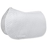 - EquiFit Essential Square All Purpose Saddle Pad Features: Slip-Resistant flannel inside Innovative wither relief design keeps pad in place Durable cotton twill outside keeps pad looking new Dual-density poly-fill for comfort & impact protection Generously sized to maintain proper fit even after washing Item Specifications: Size: One Size (Spine 23, Drop 20) Color: White