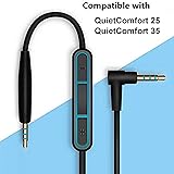 Compatible List: Compatible with Bose QuietComfort 45, QC 35, QC 35 II, QC 25, 700, 700NC, 700ANC, NCH700, OE2/OE2i headphones; Compatible with JBL Tune 700BT, 710BT, LIVE 400BT, 460NC, E40BT, E45BT, Club 950NC, Tour One headphones; Compatible with AKG N60NC, N700NC, K845BT, K840KL, N90Q, K545, Y40, Y45 headphones 3.5 mm to 2.5 mm:2.5mm plug compatible with Bose QC45, QC35, QC35 II, QC25, 700, AE2i, AE2w, AE2 headphones, The 3.5mm standard connector is compatible with cell phones, computers, iPads, MP3s and other devices with a 3.5mm connector Microphone and Volume Control: Our audio cables have a built-in microphone and volume control for easy phone calls, volume adjustments and music playback control High Quality: cable housing made of nylon to prevent tangling and durability, 24K gold-plated interface for more stable audio transmission, cable tested to withstand more than 10,000 bends You Will Get:1* 2.5 mm *3.5 mm Replacement audio cable (4.9FT, Black)