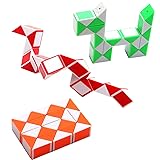 Material of magic snake cubes: this magic snake cube set is made of recyclable plastic, durable and smooth for playing, full of fun Mini snake cubes: each size of speed cube is approx. 8.6 x 0.5 x 0.35 inch/ 21.8 x 1.3 x 0.9 cm (LWH), suitable for children form 3 to 12 years old Colorful and random: these snake cubes have a lot of colors such as red white, green white, blue white, orange white and black white, they all come randomly Twist puzzle toys: you can turn it into a straight line, snake, dog, stair or other imaginative shape by rotating the triangle blocks of snake cubes, bring challenges and fun to your fingers and brain Package include: 24 x magic snake cubes, good for kids' intelligence and imagination development, great as gifts for kids, party bag fillers or party supplies