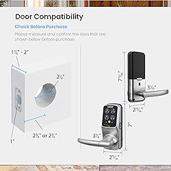 • Compatible with most standard doors 1.38 in. to 2 in. thick - universal fitment with both right-swing and left-swing doors and installs with standard tools in 10-minutes to 15-minutes. Highly secure keypad worlds first patented peek-proof keypad, displays an always shuffling set of numbers across 4 buttons and is different every time, so while your access code remains the same, the location of the numbers differs, making it near impossible for prying eyes to guess the correct code/ Convenient keyless entry lock/unlock and manage your door access with your iOS/Android smart phone or by entering a preset access code on the digital keypad, backup physical keys and backup power options included in case of emergencies. Advanced 3D fingerprint sensor - store up to 99 fingerprints and detects physical fingers only, preventing the use of copied or lifted fingerprints. Zinc alloy built lock with a rust and corrosion resistant matte black finish backed by a lifetime finish warranty. Auto lock feature - custom auto lock feature can be set to automatically lock your phone 5-seconds up to 5-minutes after unlocking, making sure your deadbolt is always secured. Long-lasting power: powered by 4 AA batteries (included), the Lockly secure smart lock lasts up to 1-year on normal use, low battery warning can be viewed on your app, all mounting hardware included. Limited 5-year mechanical and finish warranty and 2-year electronics warranty.