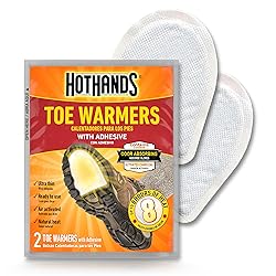 • HotHands Toe Warmers are single use air-activated heat packs that provide everyday warmth and are ideal for keeping your toes warm when the temperature gets cold. These warmers provide safe, natural heat, so you can enjoy the outdoors all year long. The toe warmers are ultra-thin, have a rounded toe and are designed for optimal comfort in boots and shoes. Features: Ultra thin Ready to use Air-activated Safe, natural heat Adhesive – It stays where you stick it! Odorless Each warmer provides up to 8 hours of heat Made in USA Hot to use: Simply open the package, peel away the paper backing, and stick the warmers to the bottom of your socks, under your toes. See package for detailed instructions. When to use: HotHands warmers are great for any occasion where long-lasting heat is desired. Outdoor sports Hunting & Fishing Tailgating at events Working in the yard Taking the pet for a walk Shopping or commuting to work