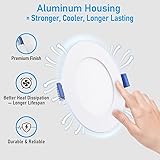 CRI90 & Dimmable: The 4 inch slim recessed lighting not only offers an dimming range from a cozy 5% to vibrant 100%, but also incorporates a high CRI90. These lights ensure that your space is illuminated with true and vivid colors, enhancing the overall ambiance Built to Last: Trust in our recessed light with ETL and ES, FCC certifications for superior quality, safety, and energy efficiency. With an impressive lifespan of 50000 hours, it provides long-lasting illumination Reliable Construction: Benefit from UL-certified wires and plugs that ensure lasting durability. The scratch-resistant frosted LED lens provides 810lm of brightness, consuming only 9 watts—equivalent to a 80-watt incandescent light Easy Install: Say goodbye to complex installations. Attach the included j-box to the LED recessed lighting using male/female cables, then secure it to the ceiling with the spring clip. This IC-rated light can directly contact insulation Perfect Indoor Lighting: With only 2 inches of clearance needed and unrestricted by housing cans, this high-brightness recessed lights suit narrow ceilings perfectly and various indoor areas like living room, bedroom, kitchens, and hallways