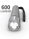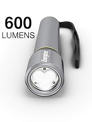 Energizer Performance Metal Flashlight works with 6 Energizer MAX AAA batteries (batteries included) Brightens with up to 15X the power of standard LEDs, reaching up to 100 meters with up to 600 lumens Durable, aircraft-grade aluminum body—stow away in your car, your bag, or pocket, and always be prepared IPX4 water-resistant construction withstands splashing Switches between 3 light modes: high, low, and strobe light Unique MAXVIZ technology replicates daylight color and definition