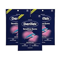- DenTek Comfort Clean Sensitive Gums Floss Picks feature soft, silky ribbon floss that stretches slightly for a softer feel Floss is easy to insert between the teeth so it's gentler on the gums Helps to strengthen gums over time Mouthwash blast flavored floss with fluoride Low profile tongue scraper ridge on the handle DenTek Floss Picks are the first floss pick to be accepted by the ADA Contains 3 packs of DenTek Comfort Clean Sensitive Gums Floss Picks, 150 count each