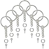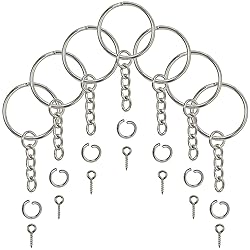 DIMENSIONS: Split ring measures 1 Inch (25mm) in diameter with rounded edges. Each set comes with 120pcs of split key chain rings with chain, 120pcs of open jump rings and 120 pieces of screw eye pins. DURABLE & HIGH QUALITY: Metal split key rings with chain are made from sturdy iron alloy, heat treated on the surface and nickel plated. Lightweight, strong and does not rust easily. EASY TO USE: Comes with separated open jump rings and screw eye pins for greater convenience. Bulk key rings with chain and connectors are great for attaching pendants and charms to make unique keychain accessories or lanyards. BULK DIY SET: Use these split keychain rings with chain to create your own keychains as gifts, to sell or promote your organization. Perfect for DIY craft projects or jewelry making.