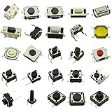 ★【Excellent Quality】100% brand new and high quality Momentary Tactile Push Button Switch Assortment Kit,combination of 25 common switch types. ★【Tactile Switch】When the pressure is applied, the switch is turned on. When the pressure is released, the switch is closed.The internal structure is forced to open and close by the metal spring. ★【Standard sizes】2x4mm,3x4mm,3x4x2mm,3x6x2.5/3.5/4.3/5mm,4x4x0.8/1.5mm,4.5x4.5x1.5/3.8/5mm,6x6x3.1/4.3/5/12mm,12x12x5/7.3mm.The height of the dimension does not include the height of the pin. ★【Widely Used】Suitable for TV, Audio equipment, Cameras,Fax machines,Computers,Printers and other electronic products and household appliances,etc. ★【Package】10PCS for each value,total 25 Values 250PCS smd momentary micro tactile push button switch assortment kit.