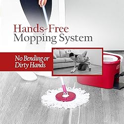 - HANDS FREE BREEZE MOPPING: At Fuller Brush we designed an absolute hands free mopping system - Never again get dirty while ringing your wet mop out by hand! The spin mop simply wrings out by placing the head in the spinner and pumping the foot pedal. You have control over the level of moisture you desire for the mop, no need to have more water on the floor than necessary. YOUR FLOORS WILL SPARKLE: The microfiber strand mop heads are made with Nano-technology and are ultra-absorbent for all your floor cleaning. We want you to be happy to keep your house clean and with this Fuller Brush mop you will easily clean the dust, tough dirt, grime and any kind of sticky spill with a simple swipe across your floor. No need to ever again exert yourself in order to have clean floors. Just run the mop over your floor and your house will sparkle like never before. SLASH YOUR CLEANING TIME WITH OUR EASY CLEANING SYSTEM: Fuller Brush?s unique 360-degree spinning mop will make your