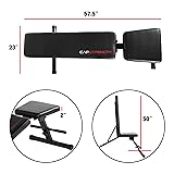 SPECS - Maximum assembled bench dimensions are 57.5 L x 23 W x 50 H inches (at full incline), 57.5 L x 23 W x 19 H (in flat position). CONSTRUCTION - The custom spec cold rolled steel tubing allows this bench to handle heavy weight loads. Tested based on ASTM standards to hold up to 1000 lbs. Recommended max weight capacity is 500 lbs. COMFORT - Double stitched boxed pad is comfortable yet firm utilizing new foam material and CARB compliant plywood. RELIABILITY - Durable powder coat finish and zinc hardware provide exceptional maintenance-free durability. The end caps on the front and rear stabilizers prevent the bench from scratching the floor. FLEXIBILITY - The multi-position backrest has 6 different positions, allowing a variety of exercises to be performed. Simply fold and store this bench after using, it's easy and efficient!