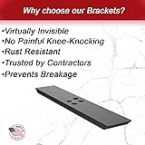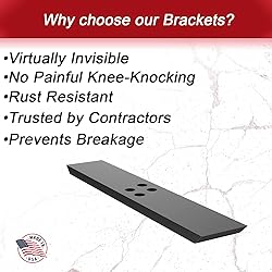 Hardware Included Virtually invisible, our brackets are non-intrusive, leaving an open space for chairs and legs. No corbels needed, which means no more knee knocking when sitting at your countertop! Added protection in the form of a beveled edge on the horizontal pieces, meaning no sharp edges for you to hurt yourself on. With the reliability of our countertop supports, you can have the peace of mind when it comes to making sure your countertop investment is protected against cracking or tipping. Proudly made in the USA, our products come with a Limited Lifetime Warranty, we stand behind our products and want to make sure you are provided with the best countertop supports on the market. Product Specifications: ½ inch thick by 2 ½ inch wide American Steel of your chosen length. Sprayed with a black rust-inhibiting finish.