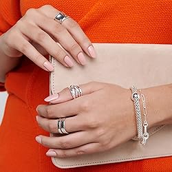 - Read between the lines with this classic ring. Two textured sterling silver bands are connected at the base and give the illusion of separate bands. Simple yet chic, you'll have it both. Consider ordering one size up as the wide nature of this ring may cause it to fit snugly. The piece comes with a ".925" sterling silver stamp as a symbol of guaranteed product quality.