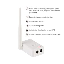 - Feature Make a wireless NVR system same effect as wired NVR system, also support the wireless IP camera Support 2.4GHZ IP camera Quick matching code Indicate the signal status of each IPC Specification Wi-Fi: 2.4Ghz Support: Up to 4 cameras Led: 5 Leds (4 leds for IPC ; 1 led for NVR) Package Include 1 x Wi-Fi Extender Router 1 x 12V 1A power supply 1 x User Manual
