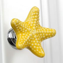 MARSTREE 6 Pack Cabinet Handles Ceramic Drawer Knobs Starfish Shape Cupboard Dresser Wardrobe Closet Door Knobs Pull Handles Coastal Kitchen Furniture Knobs with Long Short Screws, Yellow