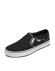 - Slip into effortless style with the Vans Men's Asher slip-on sneakers. Built with lightweight and sturdy canvas uppers, stretchy side goring, and a timeless design, these shoes are a perfect match for any dress style – from streetwear to business casual and everything in between. Comfortable right out of the box, the Asher slipon shoes for men feature a padded collar and Vans' signature rubber waffle outsole, offering superior traction and flexibility with every step. Whether you're riding your bike, walking to the gym, or taking the train home from work, these everyday sneakers are made for every moment. Off The Wall since 1966, Vans continues to inspire creativity and individuality.